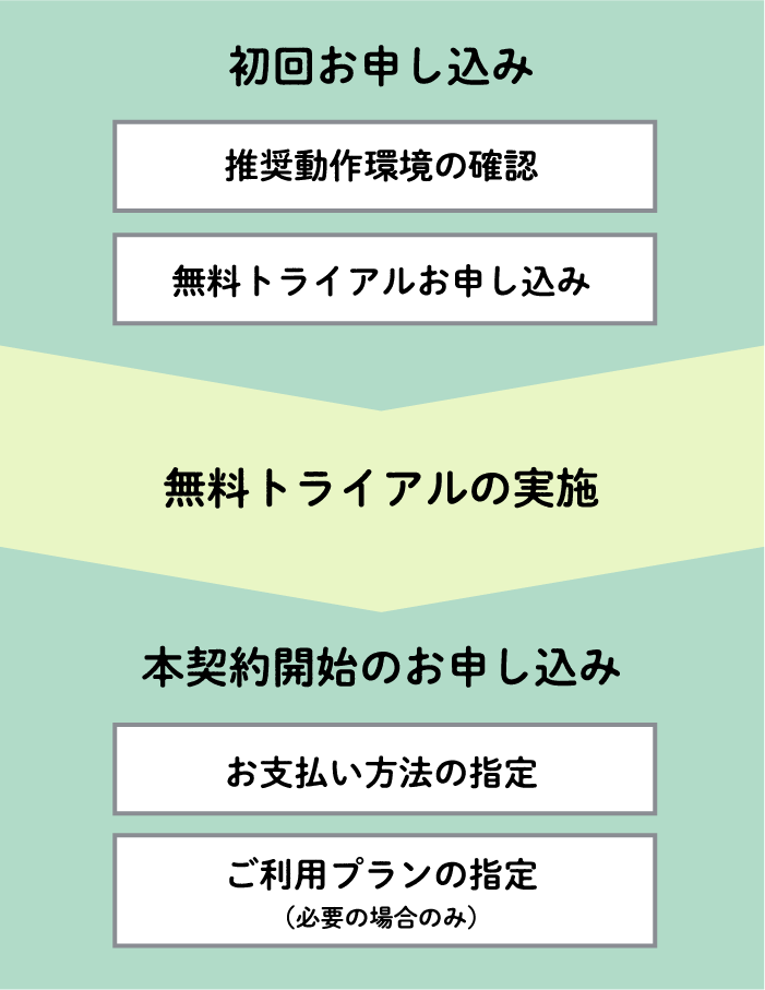 まずは1か月間の無料トライアルからご登録いただく形となります。